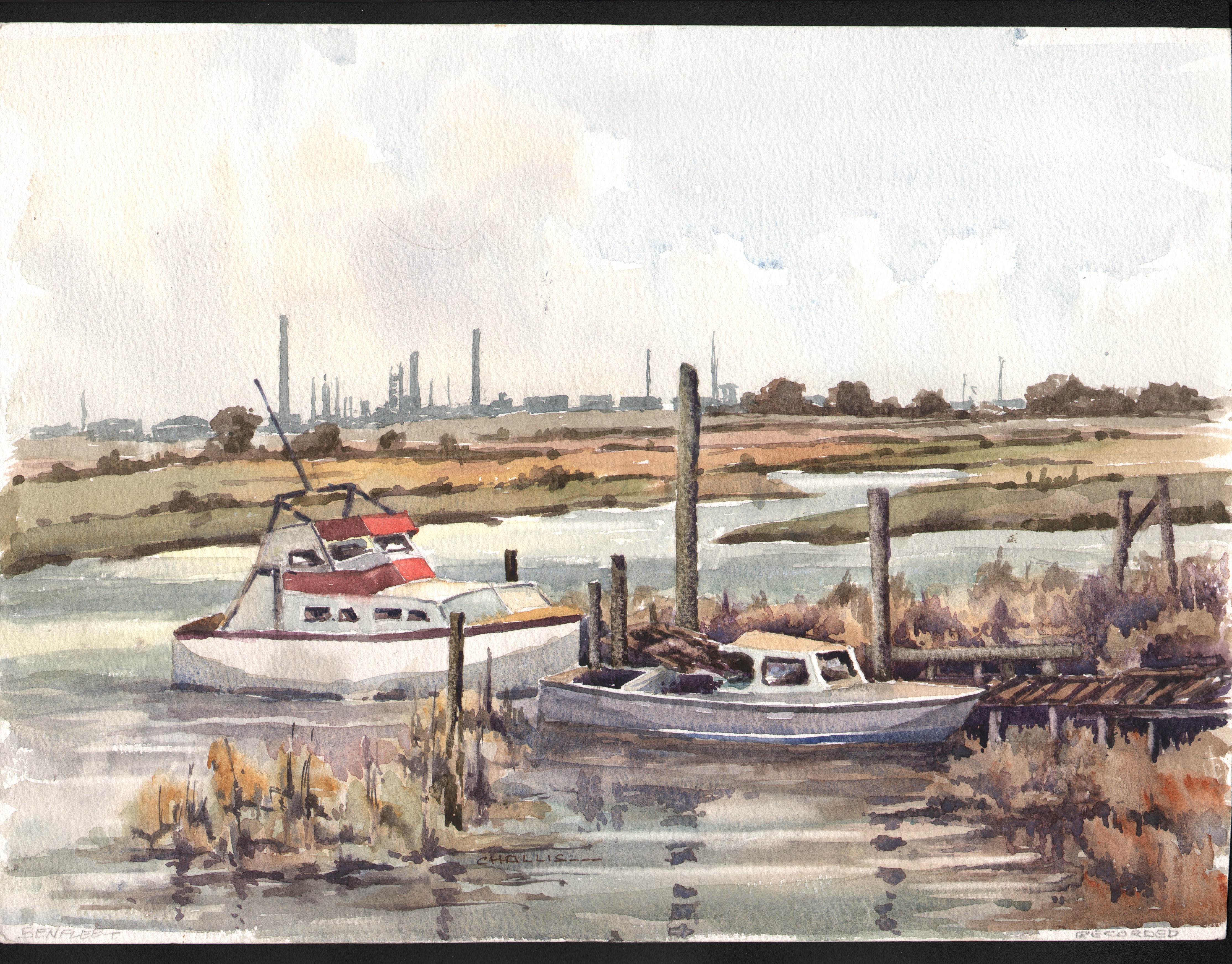 An example of his painting can be found in Benfleet Community Archive: Eric Challis A Southend artist By Mark Thres.