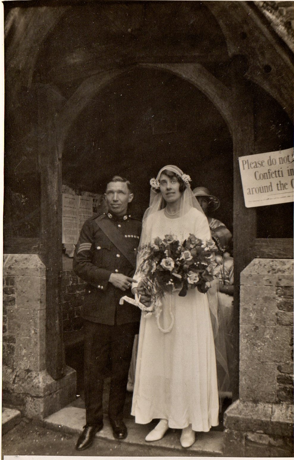 Ellen and Alfred's Wedding at St John the Evangelist. Ruth Croucher in the background.